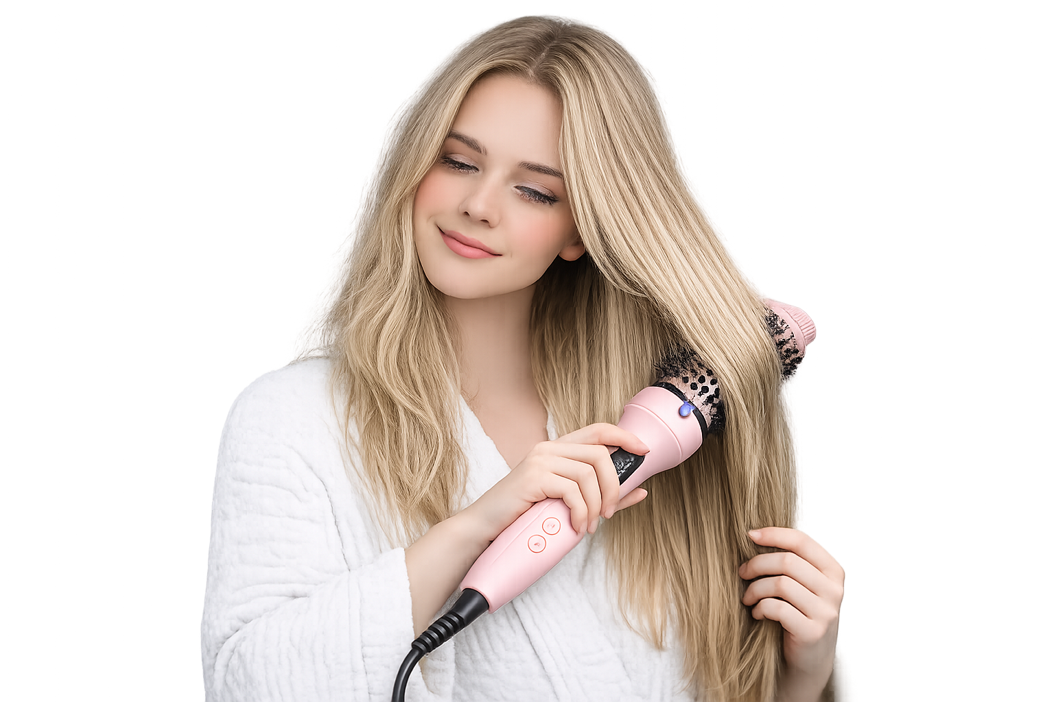 Antes de comenzar, asegúrate de que tu cabello esté limpio, ligeramente húmedo. Divide tu pelo en secciones para facilitar el peinado y enchufa tu cepillo térmico para que alcance la temperatura deseada. Preparar correctamente tu cabello ayudará a que el calor se distribuya mejor y el resultado sea más suave, brillante y duradero.